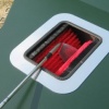You can easily switch on the Gato golf club cleaner with the green button and switch it off with the red button. We also installed a big red safety button in case you would like to stop the machine immediately.