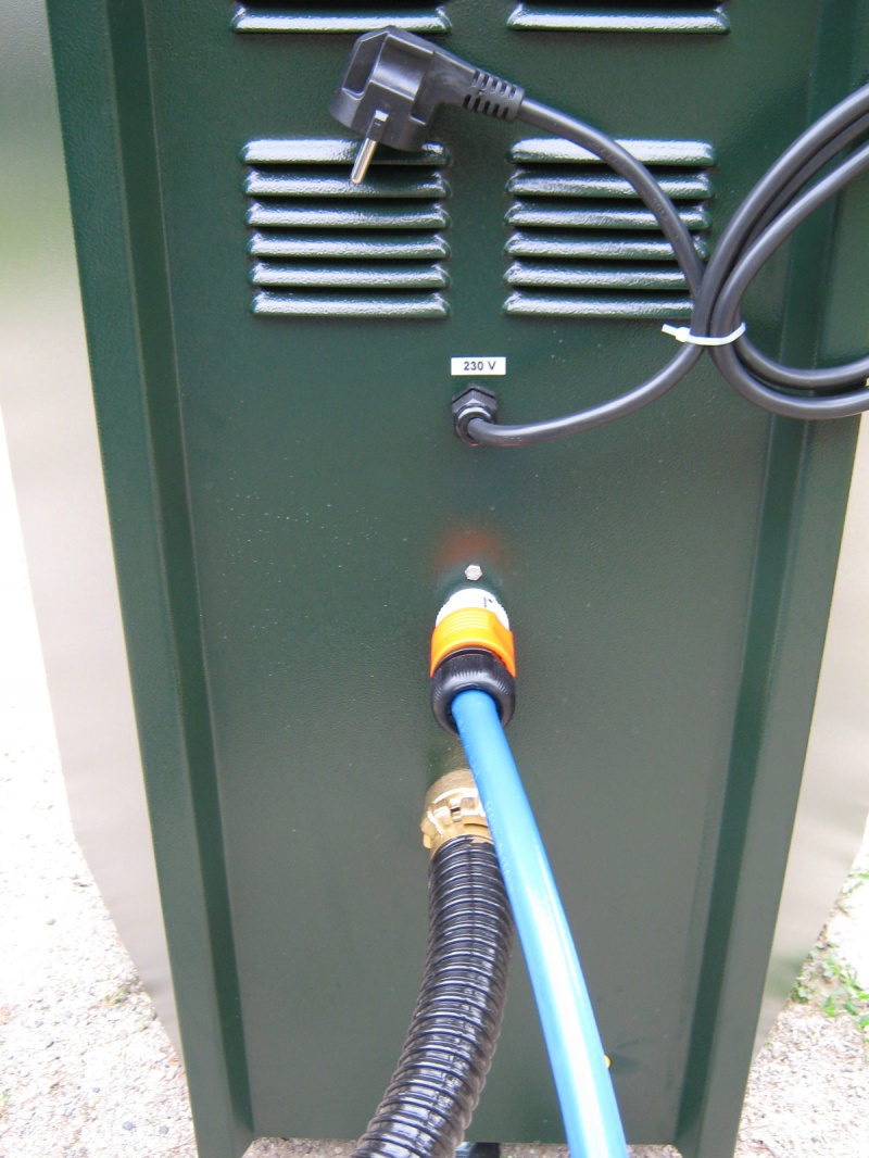 Starting the device is easy as. When the device is started for the first time, it is connected to a power supply which must have a grouding. If it does not have one, a grounding rod shall be supplied which is attached to the back side of the device. The device is connected to a water supply and a wastewater drainage system.